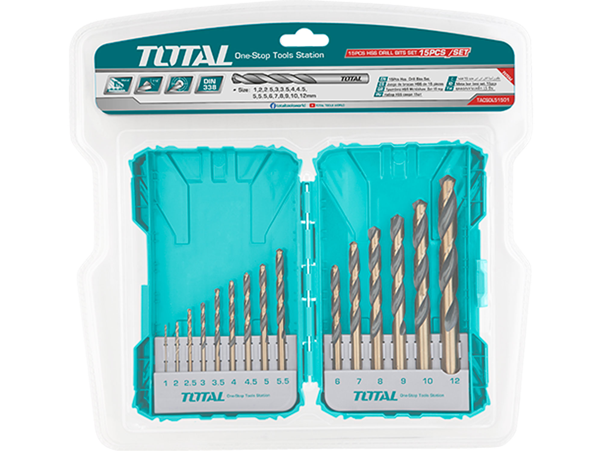 Deze boorset bevat 15 boren van snelstaal (HSS) in verschillende maten. De maten variëren van 1 mm tot 12 mm, oplopend in stappen van 0,5 mm, met uitzondering van de laatste twee maten die oplopen in stappen van 1 mm. De boren zijn verpakt in een robuuste, met kunststof versterkte doos, die ideaal is voor opslag en transport.