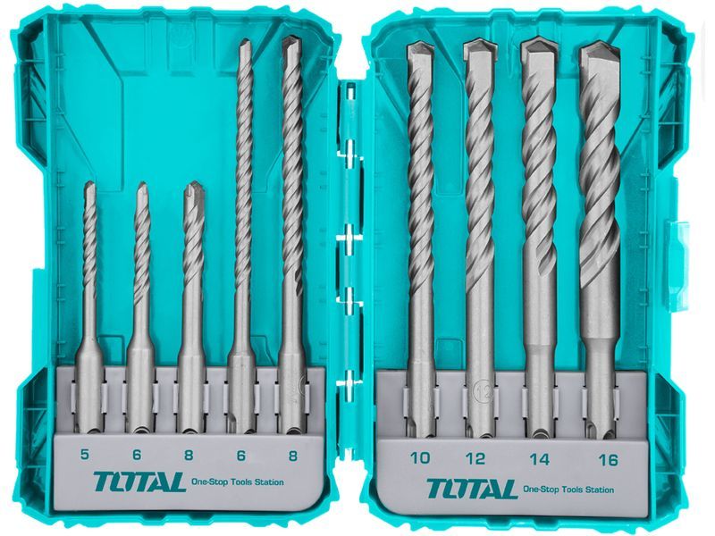 De set bevat negen boren in verschillende maten. Drie van de boren hebben een lengte van 110 mm en diameters van 5, 6 en 8 mm. De overige zes boren hebben een lengte van 160 mm en diameters van 8, 10, 12, 14 en 16 mm.