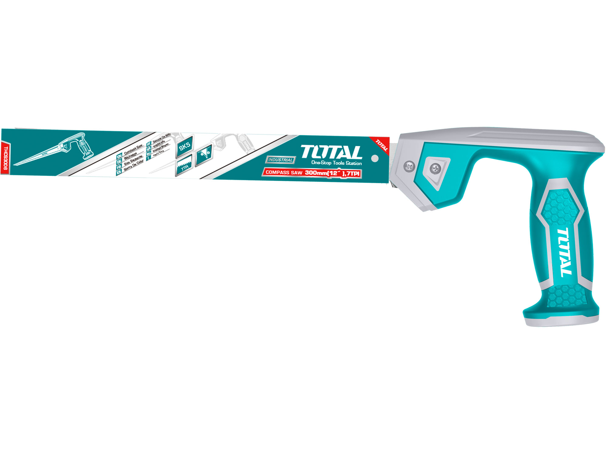 De zaag heeft een lengte van 300 mm, waardoor hij zeer veelzijdig is en geschikt voor verschillende taken. De tanden van de zaag zijn gehard om de scherpte en efficiëntie te verbeteren en de levensduur van het gereedschap te verlengen.