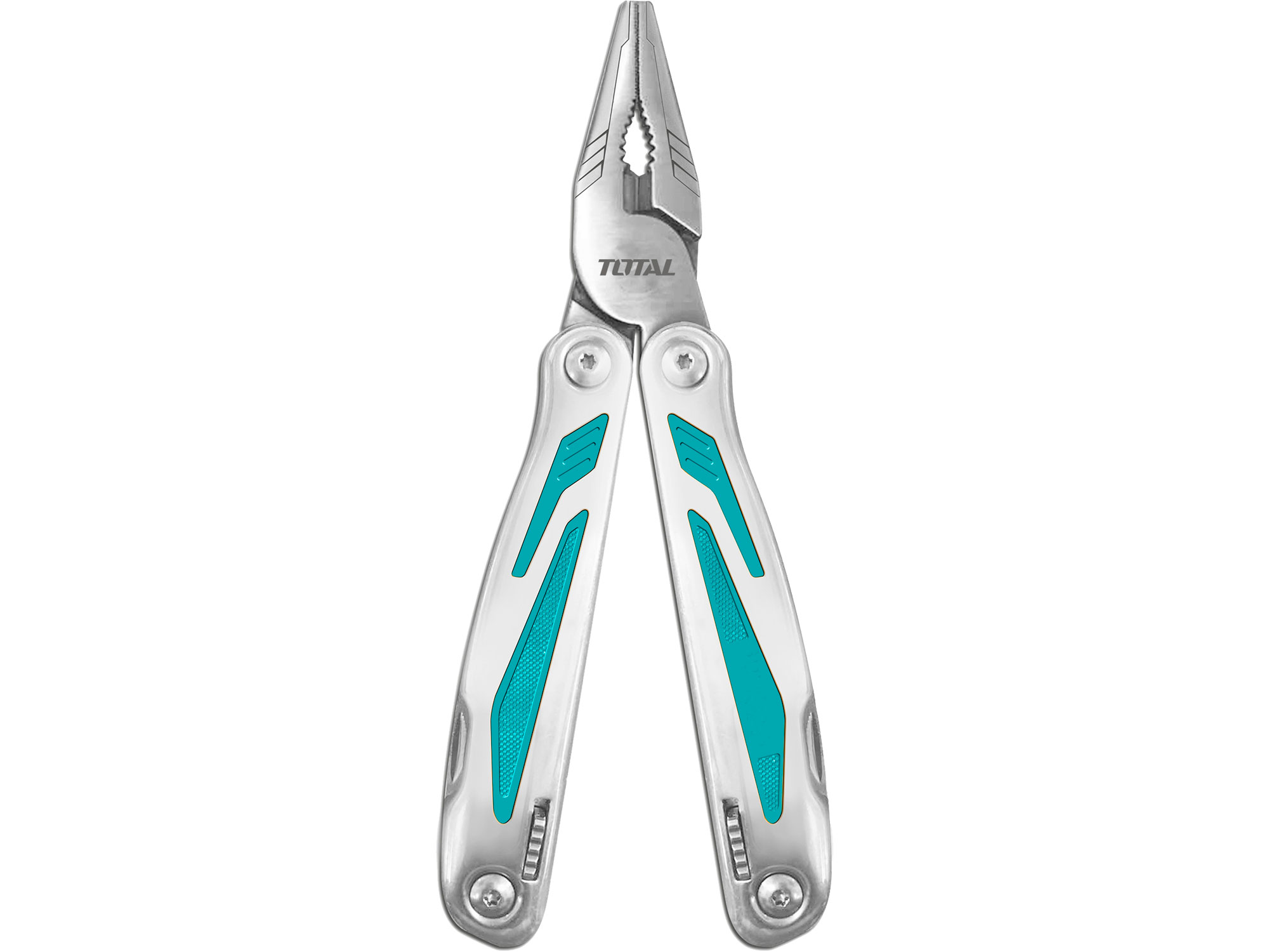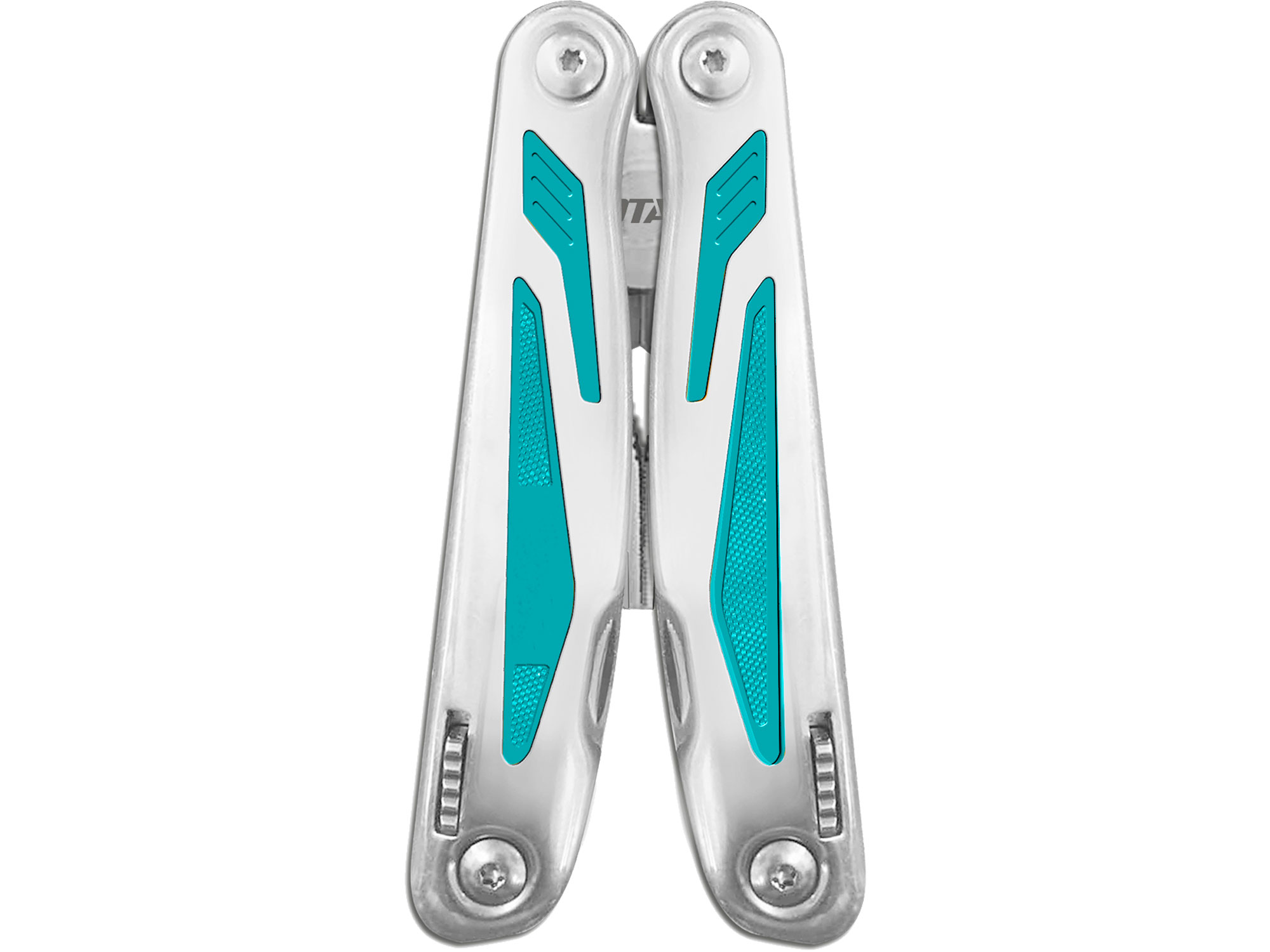 1. combinatietang: kan worden gebruikt voor het grijpen, vasthouden, snijden en buigen van verschillende materialen. 2. draadtang: ideaal voor het knippen van draden. 3. Platbek tang: voor het vastpakken en vasthouden van platte voorwerpen. 4. rondbek tang: ideaal voor het buigen van draden en andere dunne materialen. 5. kruiskopschroevendraaier: om kruiskopschroeven los of vast te draaien. 6. sleufschroevendraaier: om sleufschroeven los of vast te draaien. 7. Flesopener: Praktisch voor het openen van flessen met kroonkurken. 8. blikopener: ideaal voor het openen van blikjes. 9. zaag: voor kleine zaagklusjes. 10. mes: Voor algemene snijwerkzaamheden. 11. vijl: Voor het gladmaken en vormen van materialen. 12. priem: voor het maken van gaten in verschillende materialen. 13. nagelreiniger: voor het schoonmaken onder de vingernagels. 14. kurkentrekker: voor het openen van wijnflessen. 15. Liniaal: om kleine afstanden te meten.