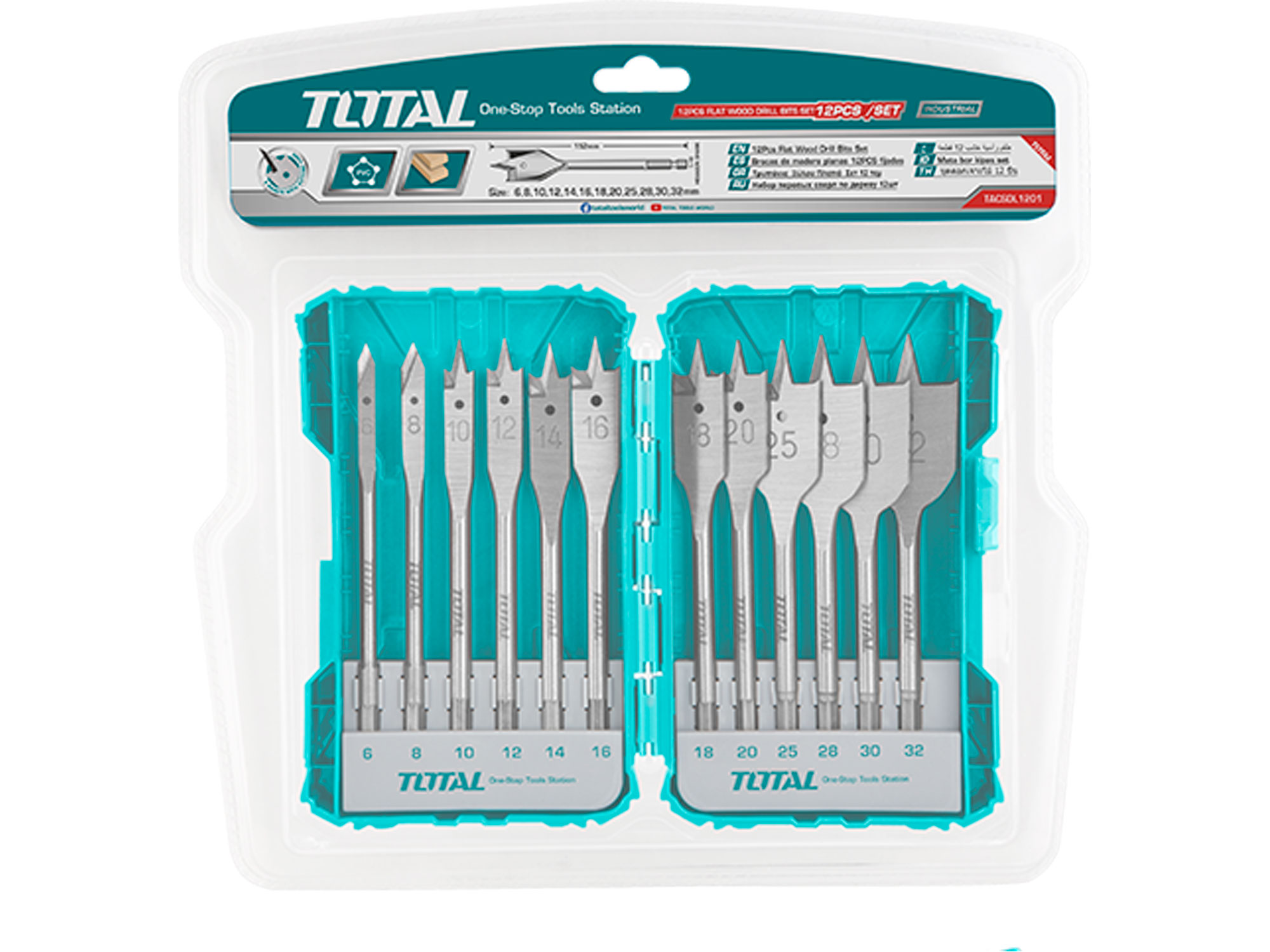 Deze set van 12 platte boren is speciaal ontworpen voor houtbewerking. Met een lengte van 152 mm kun je met deze boren diep in het hout dringen om de gewenste gaten te boren.