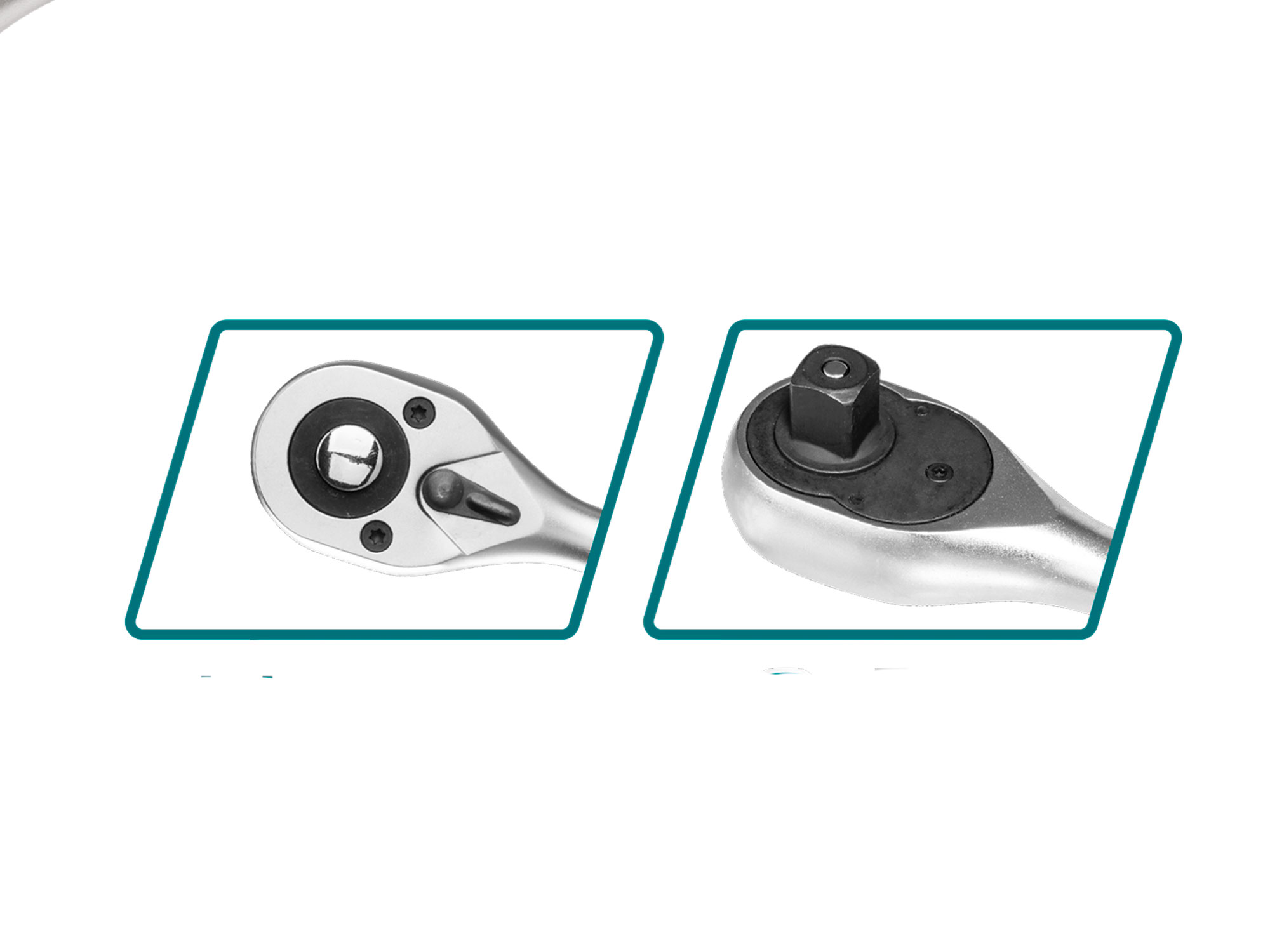 De industriële ratel met een afmeting van 1/4" en een lengte van 158mm is een onmisbaar gereedschap voor elke vakman. Hij heeft 45 extra tanden voor een hoge nauwkeurigheid en efficiëntie. Hij is gemaakt van chroom vanadium staal (CR-V) en chroom molybdeen staal (Cr-Mo), die bekend staan om hun extreme duurzaamheid en weerstand. Deze materialen zorgen ervoor dat de ratel zelfs onder hoge belasting niet faalt en een lange levensduur heeft.