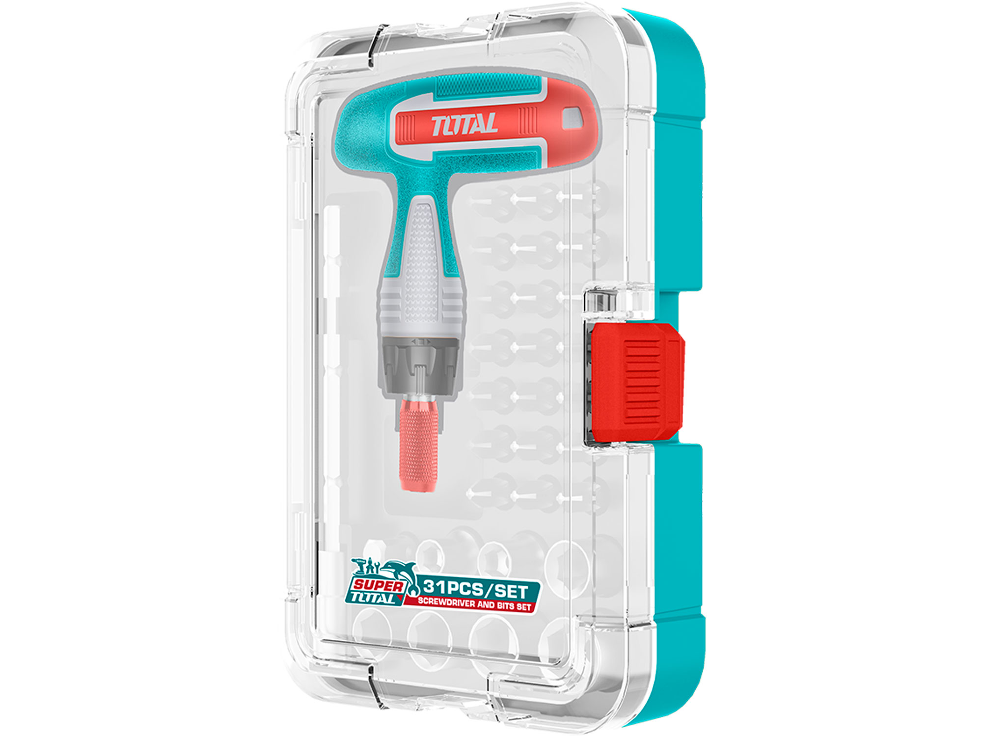 Ratschenschraubendreher mit T-Griff und Spitzen, Satz à 31 Stück, CrV