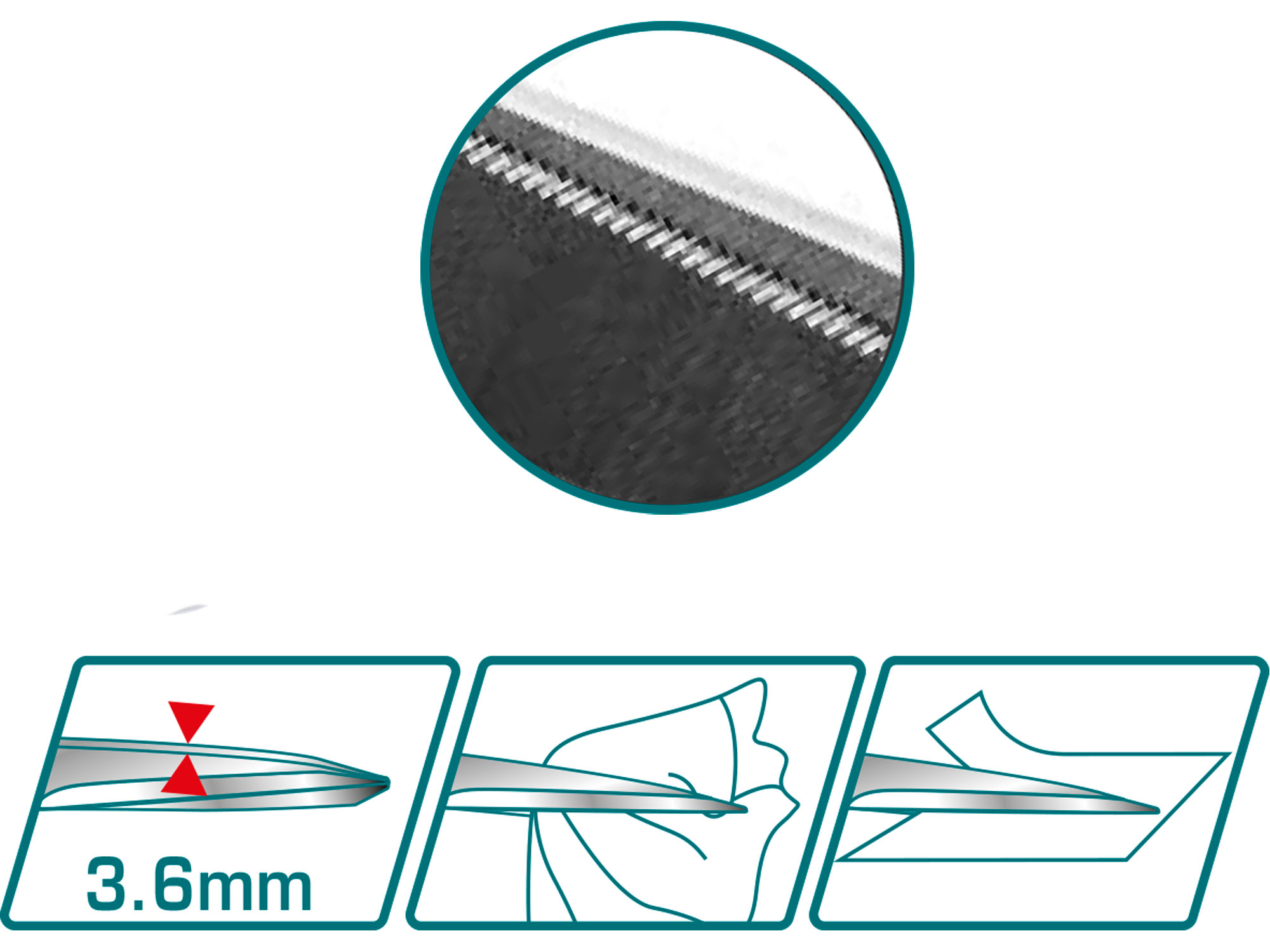 Het unieke veerontwerp maakt eenvoudig en moeiteloos hanteren mogelijk, terwijl het ergonomische ontwerp de handgreep optimaliseert en zorgt voor comfortabel en veilig hanteren. Het handvat is over de hele lengte versterkt met roestvrij staal, waardoor de schaar nog robuuster en bestendiger is.