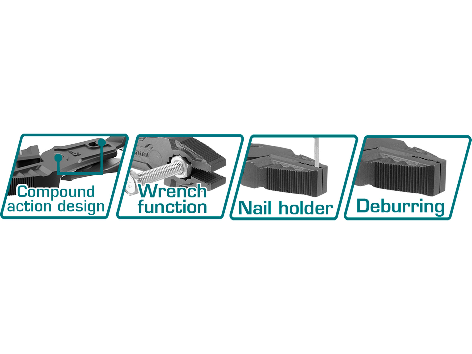 Bovendien heeft deze tang een nagelhouderfunctie, een moersleutelfunctie en een ontbraamfunctie. Dit maakt het een veelzijdig gereedschap dat geschikt is voor een breed scala aan taken.