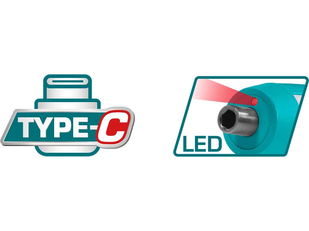 - Opladen via USB - Met TOTAL bitset - LED-verlichting - Koppelschakelaar en LED koppelindicator - Links- en rechtsdraaiend - Compact en handig ontwerpLeveringsomvang:
