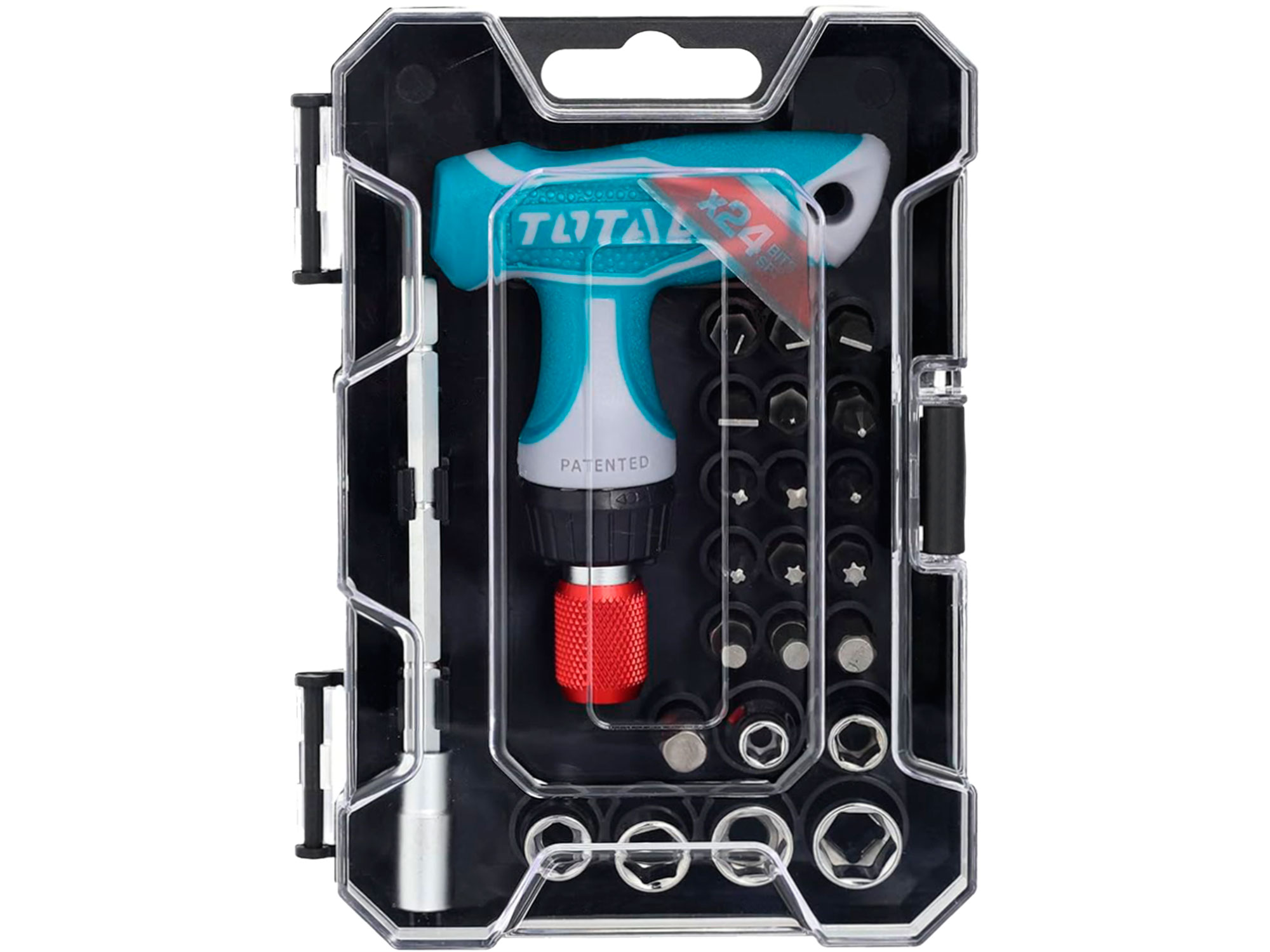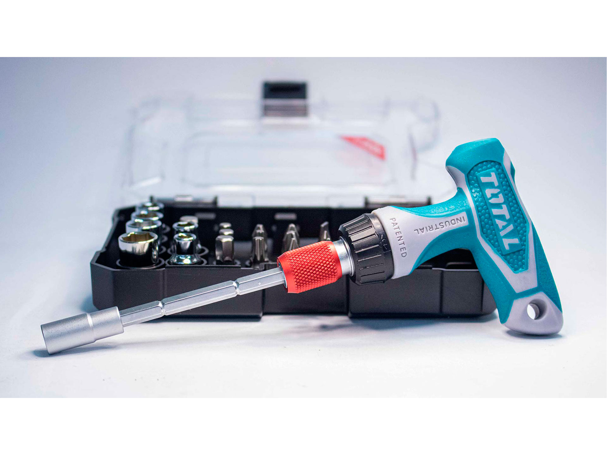 Productinformatie "Total Ratelschroevendraaier met T-greep en punten, set van 24, CrV"