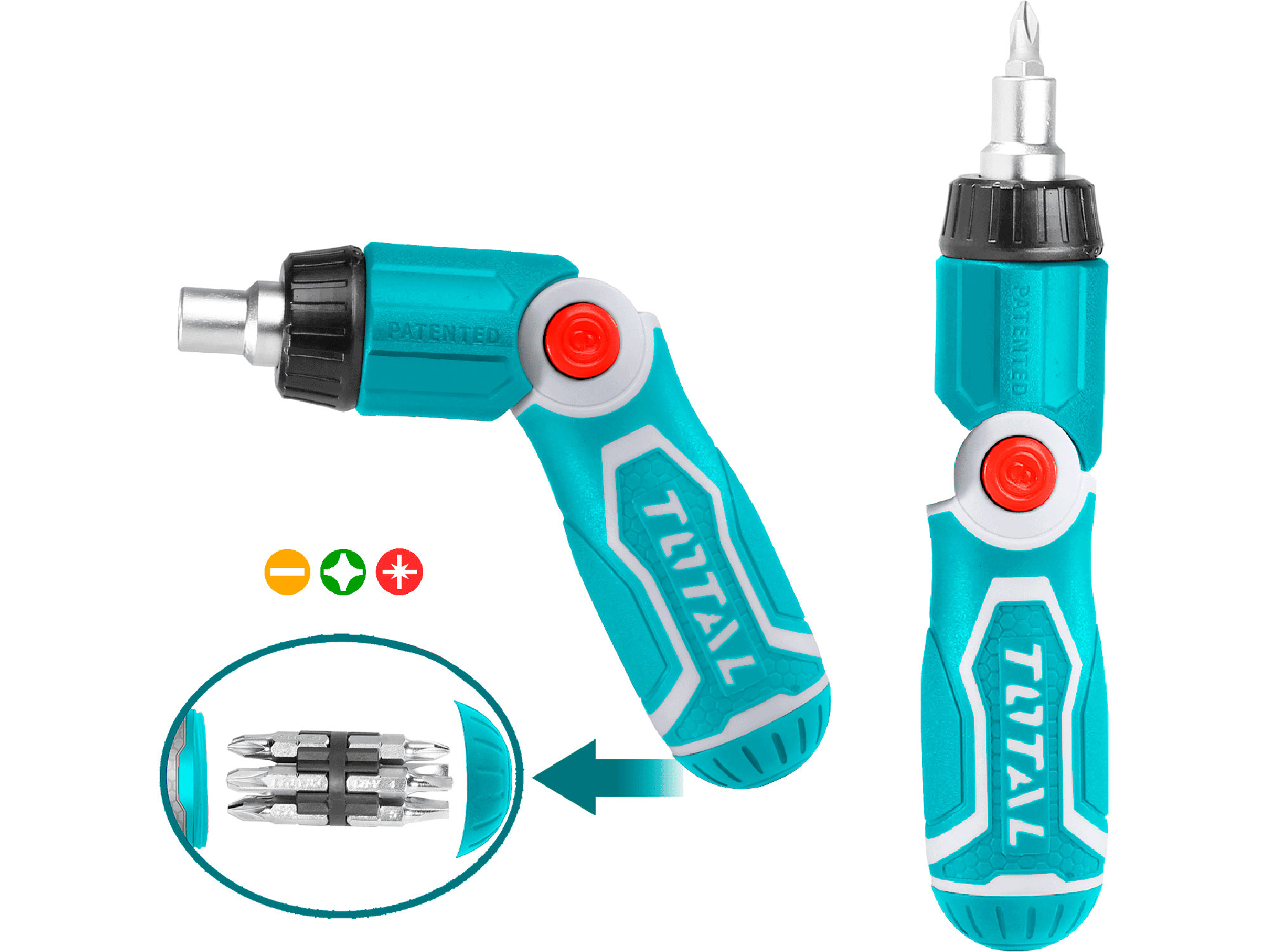 Total Deze 13-in-1 schroevendraaierset van biedt een verscheidenheid aan tips die geschikt zijn voor verschillende toepassingen. De set bevat een ratelschroevendraaier en 12 tips in de maten SL4, SL5, SL6, SL7, PH0, PH1, PH2, PH3, PZ0, PZ1, PZ2 en PZ3. Dit maakt het een veelzijdig gereedschap voor zowel doe-het-zelvers als professionals.