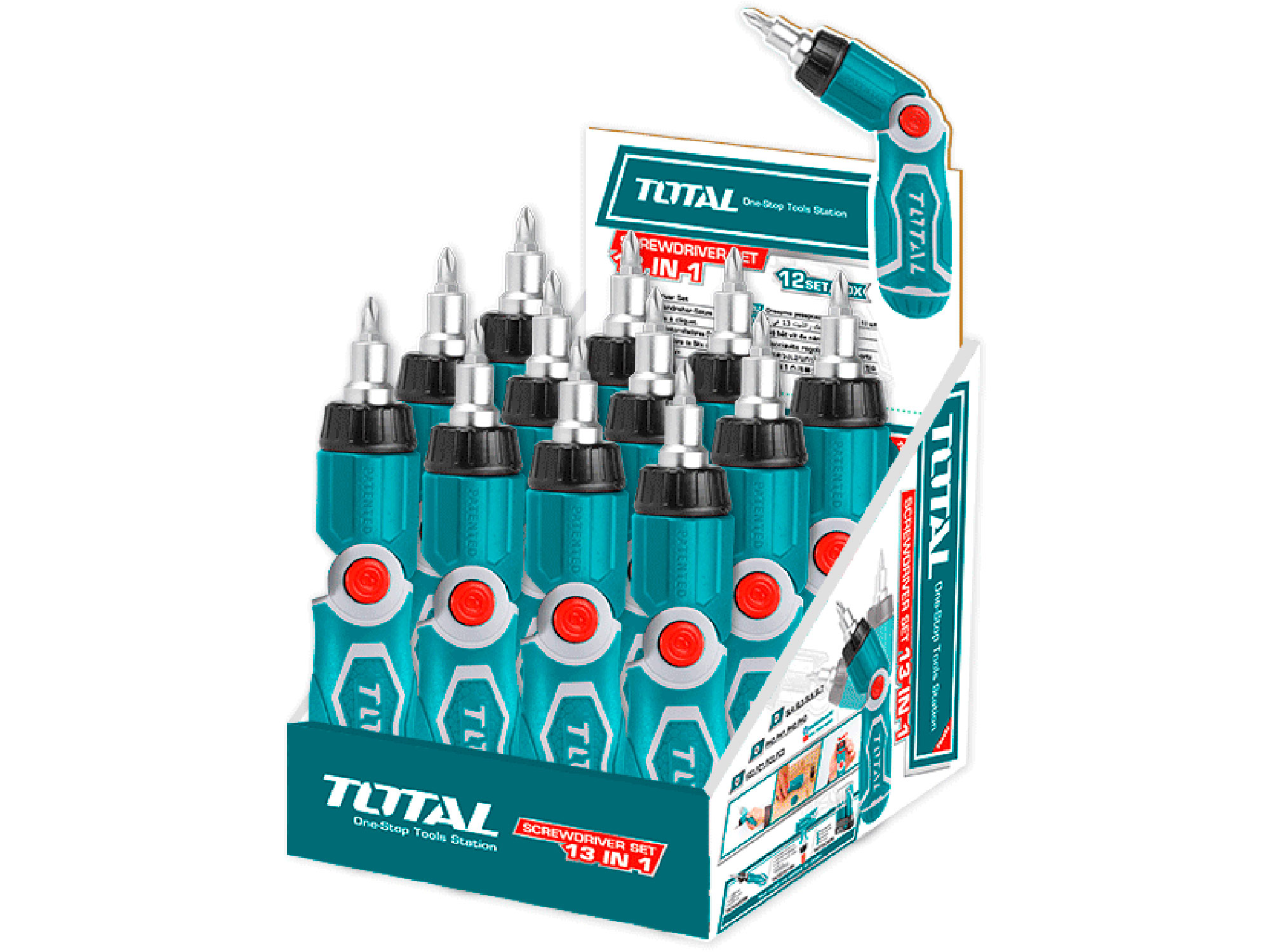 Total De 13-in-1 schroevendraaierset van is compact en licht, waardoor hij gemakkelijk op te bergen en te vervoeren is. Ideaal voor gebruik in de werkplaats, thuis of op de bouwplaats. Hij biedt een uitstekende prijs-kwaliteitverhouding en is onmisbaar in elke gereedschapskist.
