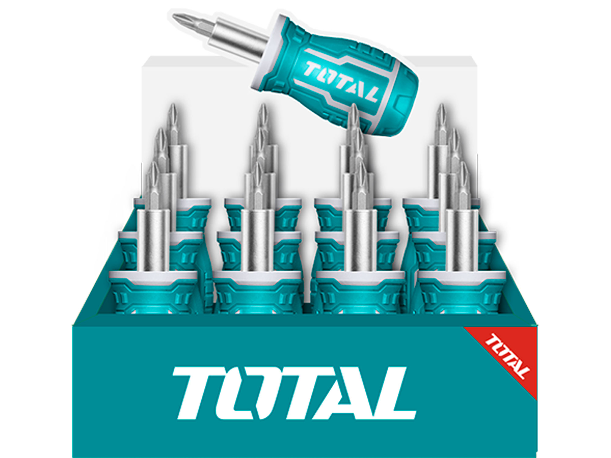 Total Deze 8-in-1 schroevendraaierset van is een veelzijdig gereedschap dat in geen enkele gereedschapskist mag ontbreken. Hij is gemaakt van Cr-V (chroom vanadium), een materiaal dat bekend staat om zijn duurzaamheid en roestbestendigheid.