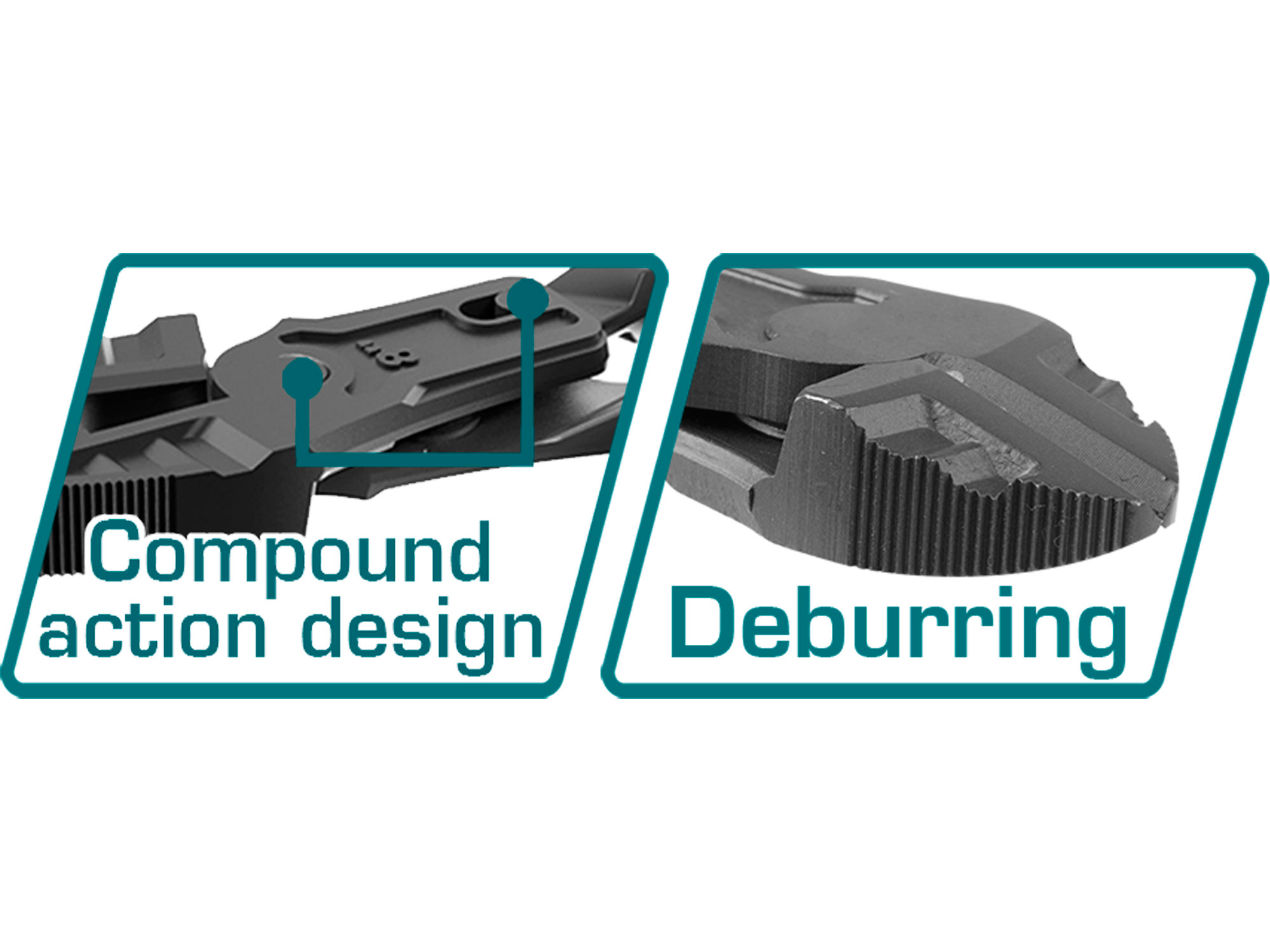 - Met een grootte van 230 mm is deze robuuste tang een onmisbaar gereedschap voor elke vakman - Dankzij de zijdelingse overbrenging is de tang bijzonder gebruiksvriendelijk en kan 65% energie worden bespaard in vergelijking met conventionele tangen - Gemaakt van chroom vanadium staal (Cr-V), een van de meest robuuste en duurzame materialen op de markt - Oppervlaktebehandeling met tefloncoating zorgt voor meer duurzaamheid en betere prestaties - De driekleurige TPR-handgreep biedt een stevige grip en maximaal comfort tijdens het werken - De extra ontbraamfunctie maakt deze tang tot een veelzijdig gereedschap dat geschikt is voor zowel het splitsen als het ontbramen van materialen - Verpakt in een halve dubbele blisterverpakking voor veilig transport en eenvoudig opbergen Fabrikant